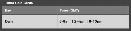 This month will see Gold Cards rushing to the tables twice as fast with Turbo Gold Cards. Everyday from July 1st through 31st Gold Cards will hit ring game tables at double speed between the following times: